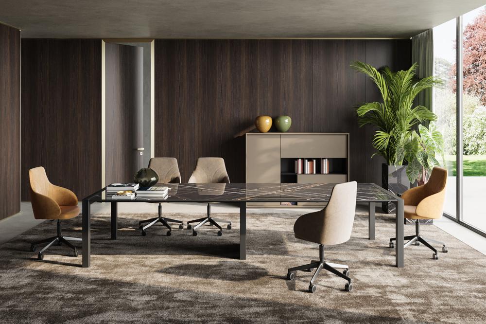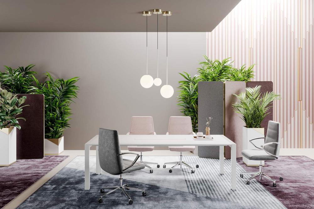Simple et polyvalent, Extralight est une collection de bureaux et de tables de réunion caractérisée par une structure métallique essentielle et un plateau léger, qui s’intègre facilement dans différents environnements de travail.