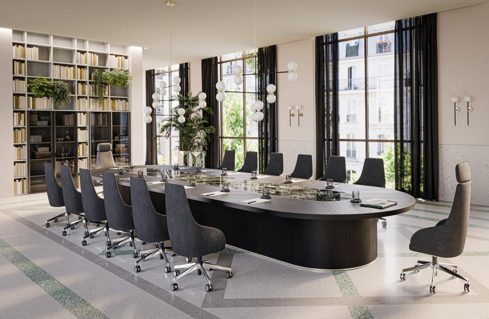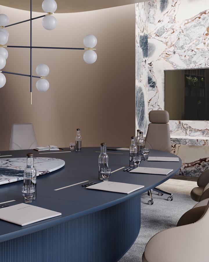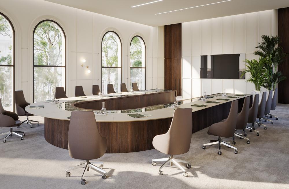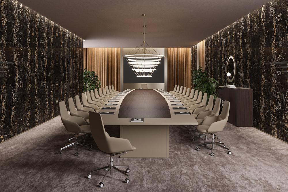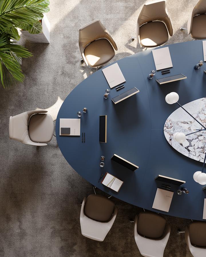 La collection Bespoke Prof est capable de donner forme à n’importe quel concept personnel de salle de réunion, avec des tables entièrement conçues sur mesure, en présentant des combinaisons de matériaux raffinés et des solutions fonctionnelles avancées.